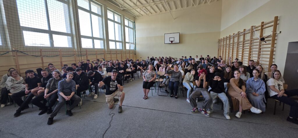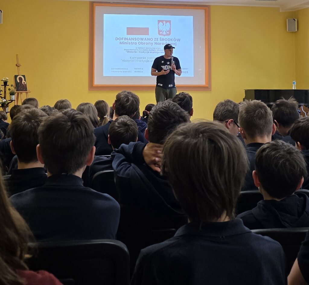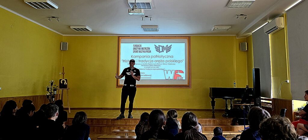 Zadanie realizowane dzięki dofinansowaniu z Urzędu Marszałkowskiego Województwa Małopolskiego. Od 1 września do 31 października 2025 roku Fundacja Drużyna Mistrzów Sport Muzyka Pasja realizowała program warsztatów dla młodzieży pod tytułem „1000-lecie Korony -autorskie warsztaty Drużyny Mistrzów poświęcone historii i kulturze Polski”. W ramach projektu odwiedziliśmy pięć szkół na terenie województwa małopolskiego, gdzie przeprowadziliśmy autorskie warsztaty łączące prelekcje edukacyjno-historyczne z elementami muzyki, filmu i przekazu artystycznego. Podczas spotkań uczestnicy mogli nie tylko wysłuchać inspirujących opowieści o bohaterach narodowych i kluczowych momentach polskiej historii, ale również uczestniczyć w wykonaniu na żywo utworów patriotycznych z repertuaru Drużyny Mistrzów, wzbogaconych o projekcje teledysków multimedialnych. Celem programu było rozwijanie świadomości historycznej i patriotycznej młodzieży, promowanie polskiej kultury i tradycji oraz kształtowanie postaw obywatelskich poprzez nowoczesne, angażujące formy edukacji. Galeria: