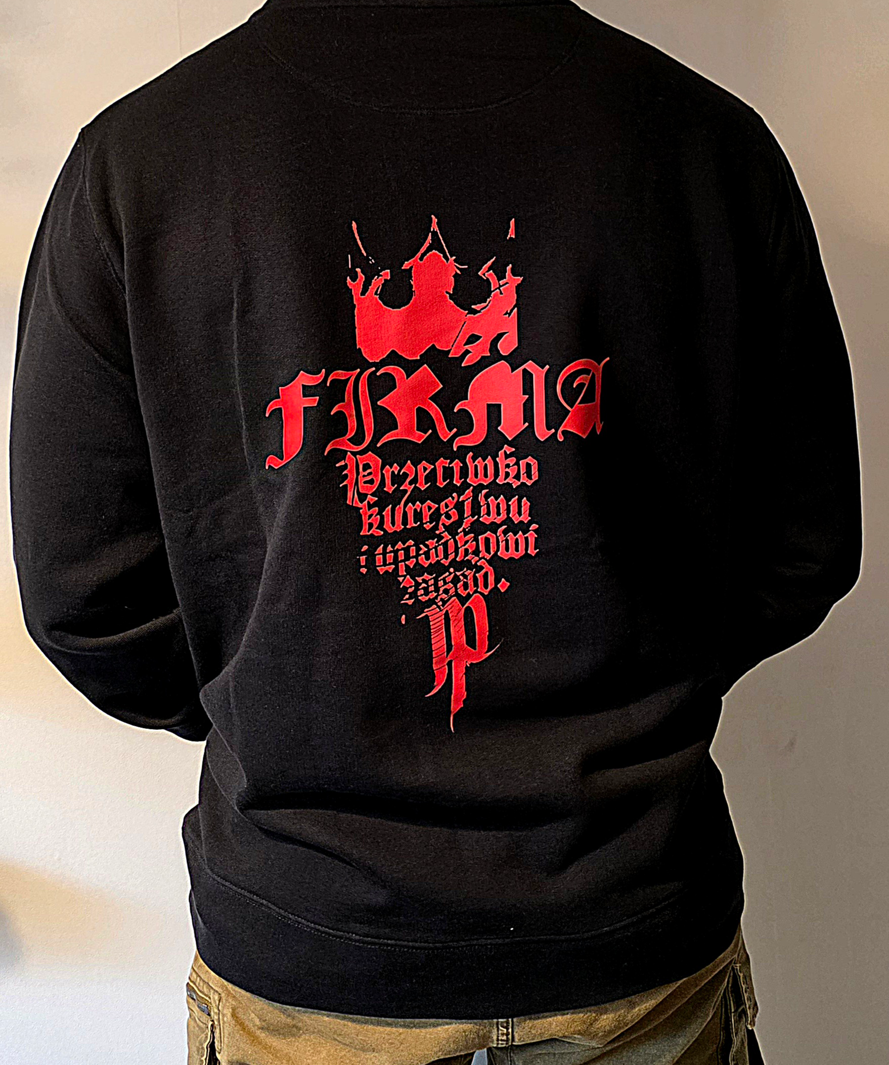 Bluza Firma Red Classic to klasyczna forma bez kaptura, uszyta z wysokiej jakości materiału o gramaturze 300 g/m². Model unisex, utrzymany w streetwearowym, ponadczasowym kroju, zapewnia wygodę, lekkość i naturalne dopasowanie do codziennych stylizacji. Wykonana z 85% organicznej bawełny i 15% poliestru, z dzianiny nieczesanej (pętelka), gwarantuje komfort noszenia i trwałość użytkową.