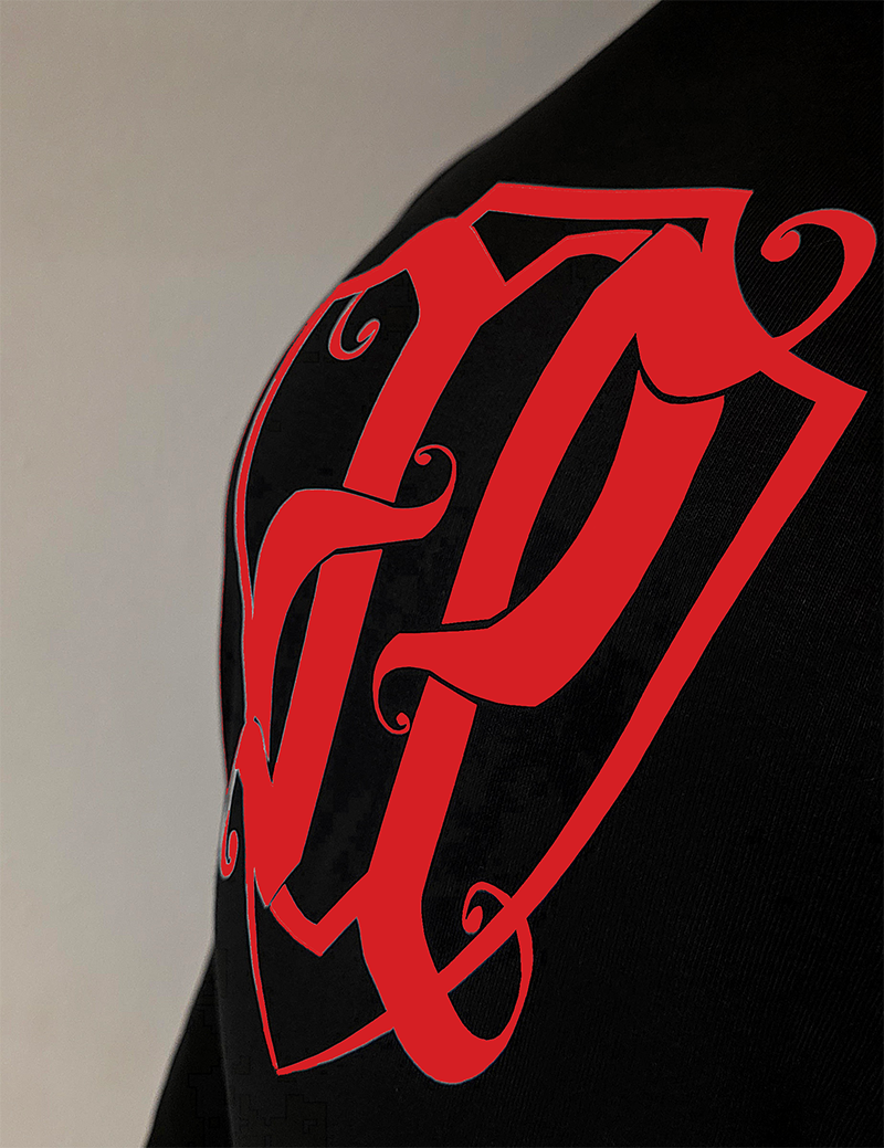 Tył logo JP Korona w technice transferowej