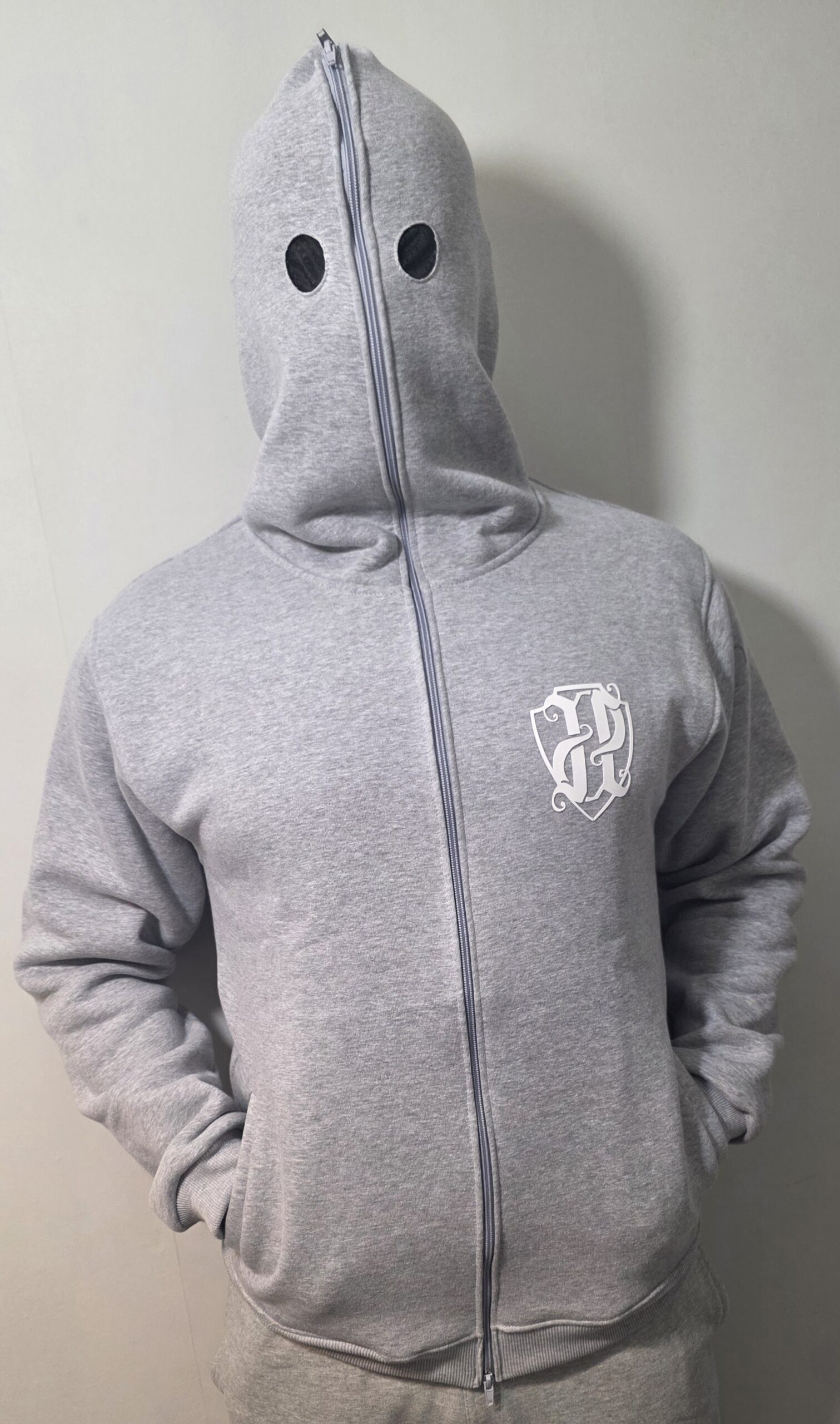 Full-Zip Hood: Unikalna konstrukcja kaptura typu „full-zip” pozwala na pełne zapięcie bluzy, tworząc charakterystyczną maskę z otworami na oczy. To element, który stał się symbolem miejskiego kamuflażu.