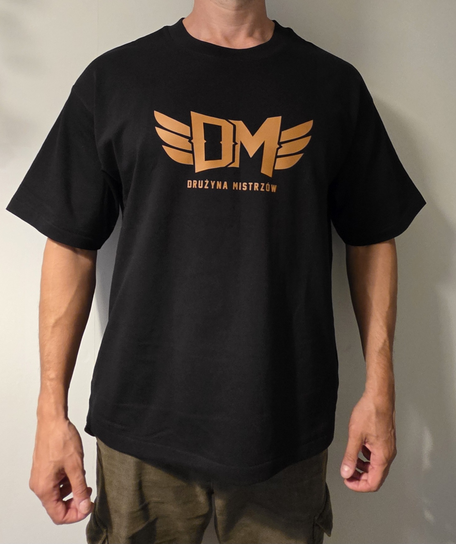 T-shirt Drużyna Mistrzów Premium to wysokiej jakości koszulka streetwearowa wykonana z materiałów klasy premium. Model ma nowoczesny oversize’owy krój, szeroką linię ramion i masywną strukturę materiału o imponującej gramaturze 280 g/m2. Jest gruby, solidny, świetnie trzyma formę i został zaprojektowany w pełnej zgodzie ze standandardem marki Drużyna Mistrzów. Model UNISEX.