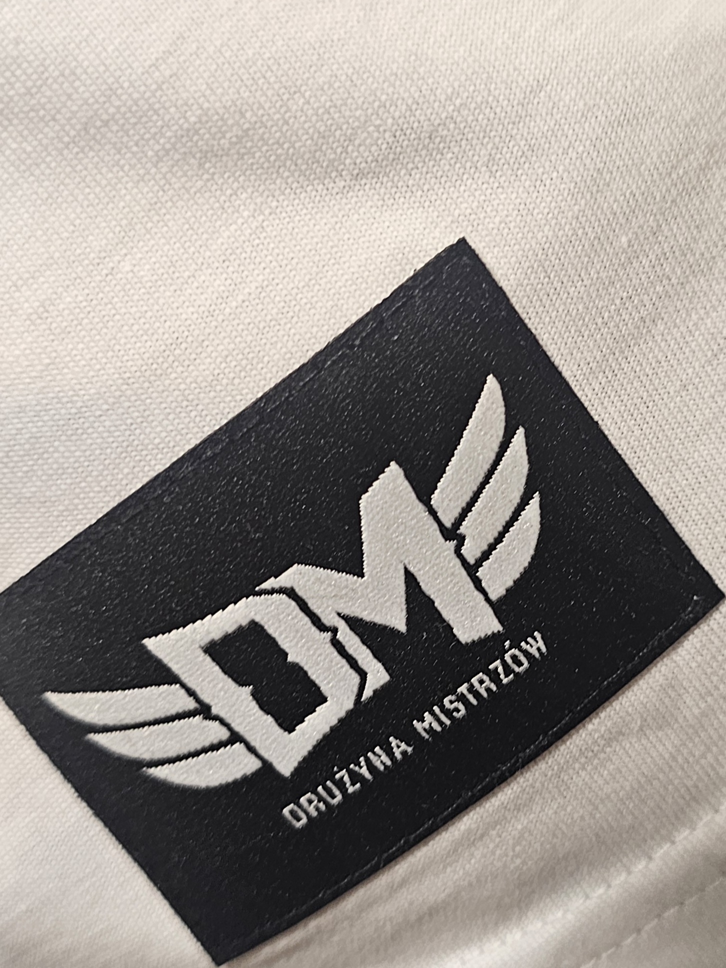 Detale Premium: Na piersi znajduje się precyzyjne logo „DM – Drużyna Mistrzów”, będące symbolem determinacji i sportowego ducha. Dodatkowa żakardowa metka u dołu koszulki potwierdza autentyczność produktu.