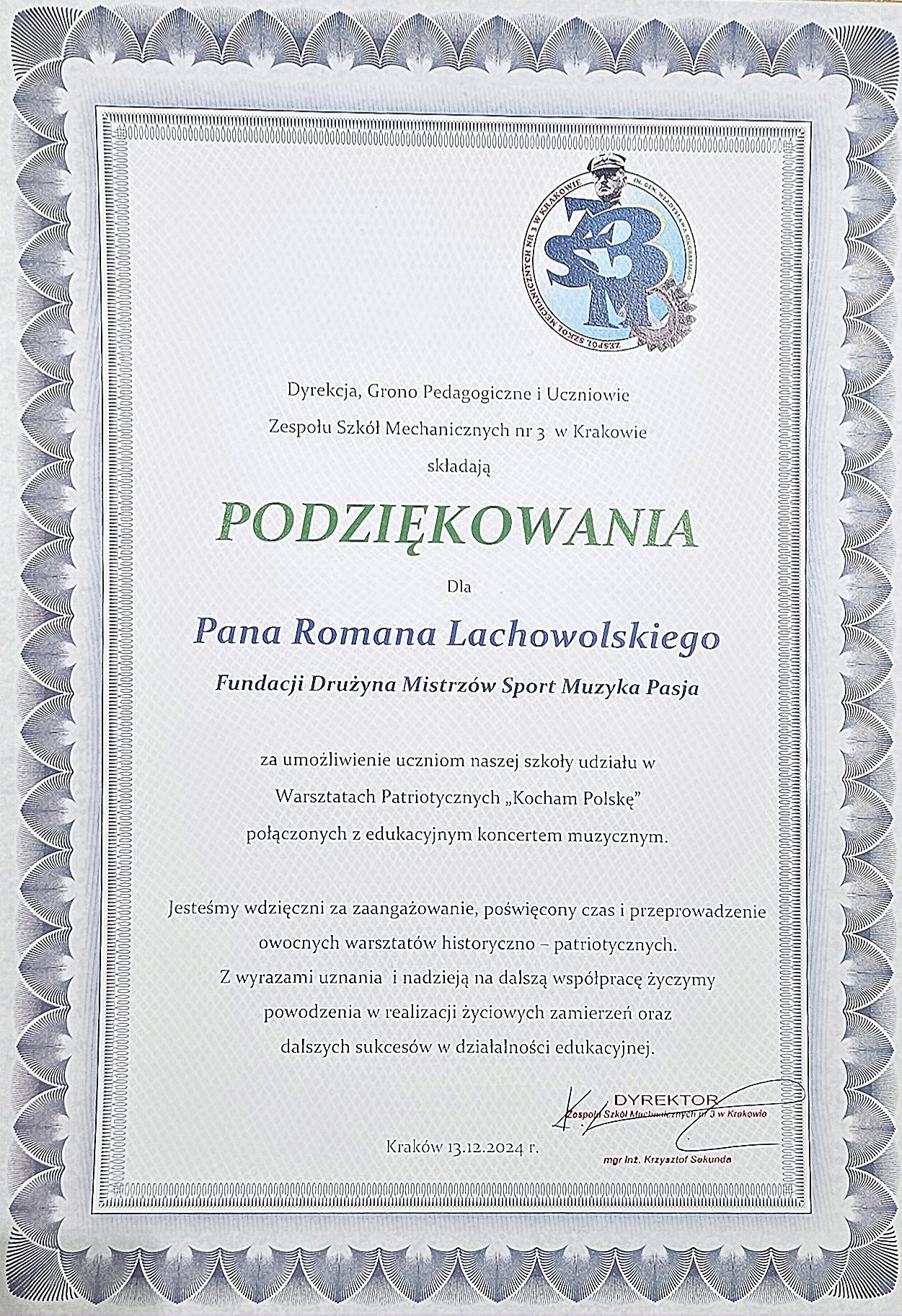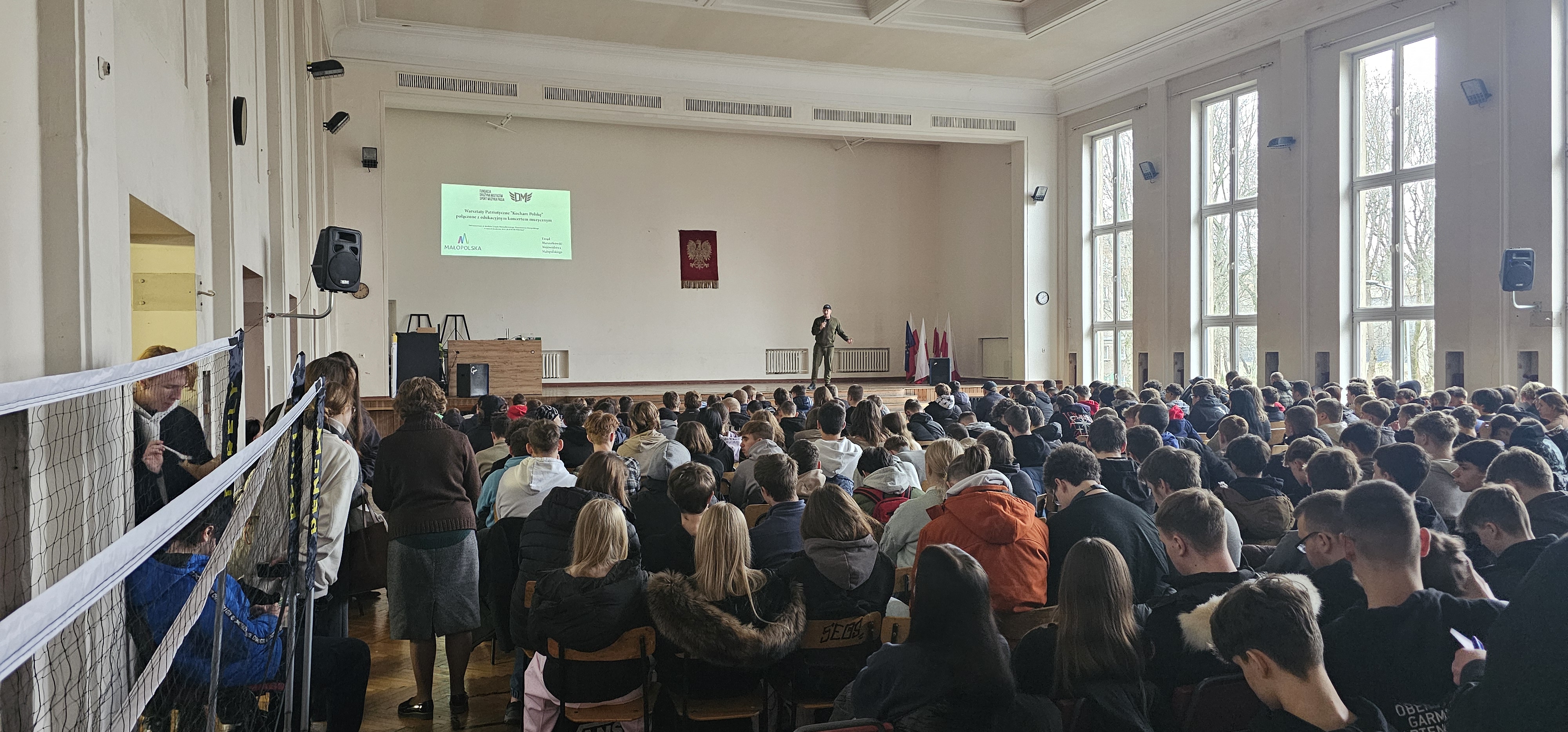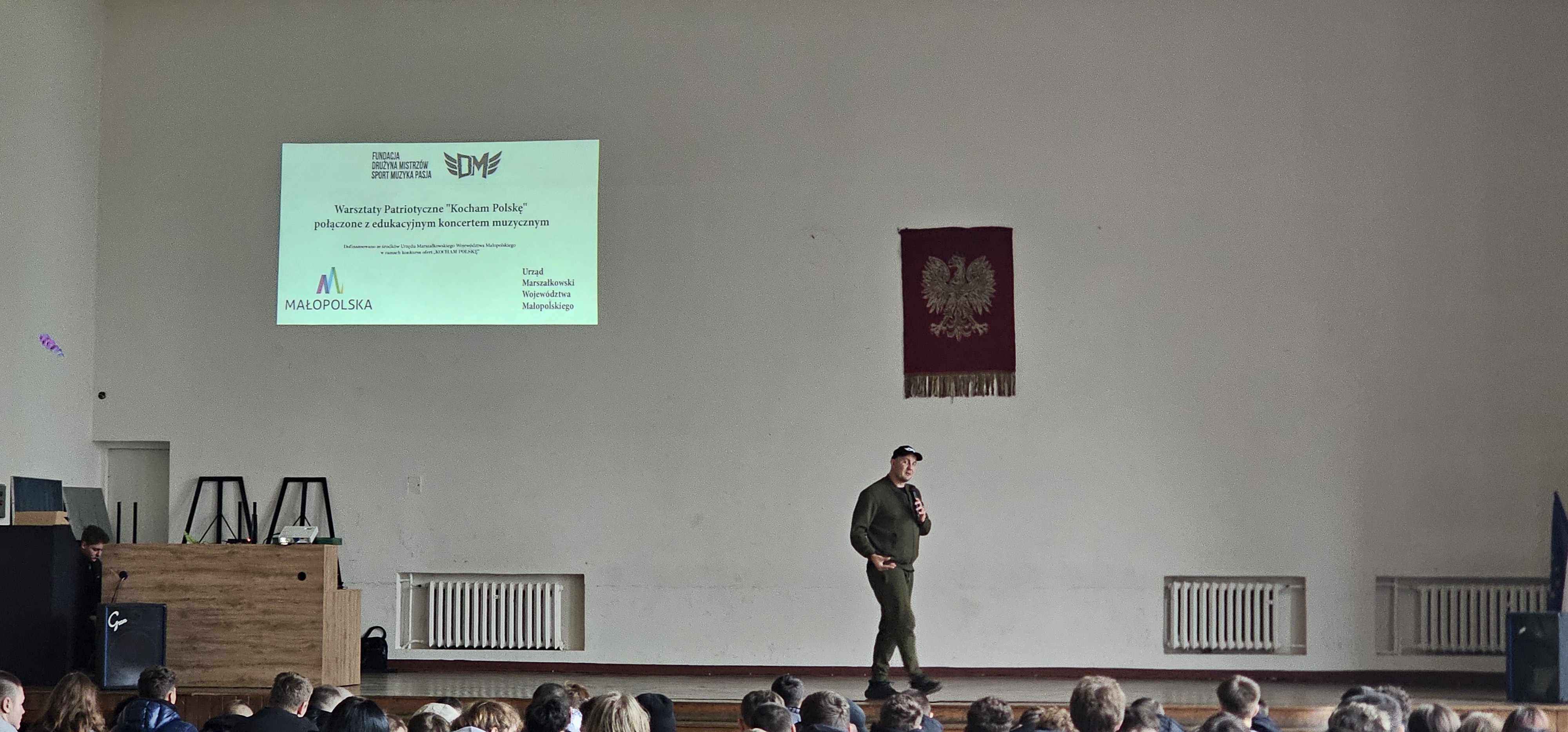 Od 1 września 2025 roku Fundacja Drużyna Mistrzów – Sport, Muzyka, Pasja realizuje program dofinansowany ze środków Urzędu Marszałkowskiego Województwa Małopolskiego, zatytułowany: „Warsztaty edukacyjno-profilaktyczne Drużyny Mistrzów w ramach Jubileuszu Tysiąclecia Korony Polskiej”. W ramach programu przeprowadziliśmy cztery autorskie cykle warsztatów dla młodzieży ze szkół z terenu województwa małopolskiego. Podczas zajęć realizowaliśmy: prelekcje profilaktyczne dotyczące uzależnień – m.in. od używek, smartfonów, social mediów i internetu, prelekcje edukacyjne poświęcone świadomemu i odpowiedzialnemu korzystaniu z technologii cyfrowych i przestrzeni internetowej, warsztaty dotyczące profilaktyki hejtu, przemocy i cyberprzemocy, a także – w związku z jubileuszem Tysiąclecia Korony Polskiej – zajęcia edukacyjne poświęcone historii Polski, prezentujące ważne wydarzenia oraz wybitne postacie z dziejów naszego kraju. Celem programu było nie tylko poszerzenie wiedzy historycznej, lecz także motywacja do aktywnego i odpowiedzialnego uczestnictwa młodego pokolenia w życiu społecznym i obywatelskim. Jak przy każdym projekcie realizowanym przez Fundację, część prelekcyjna została połączona z koncertem muzycznym z repertuarem Drużyny Mistrzów, wzbogaconym o audiowizualną prezentację tematycznych teledysków edukacyjnych i patriotycznych. Serdecznie dziękujemy młodzieży oraz kadrze pedagogicznej za aktywny udział, zaangażowanie i inspirujący, wspólnie spędzony czas!